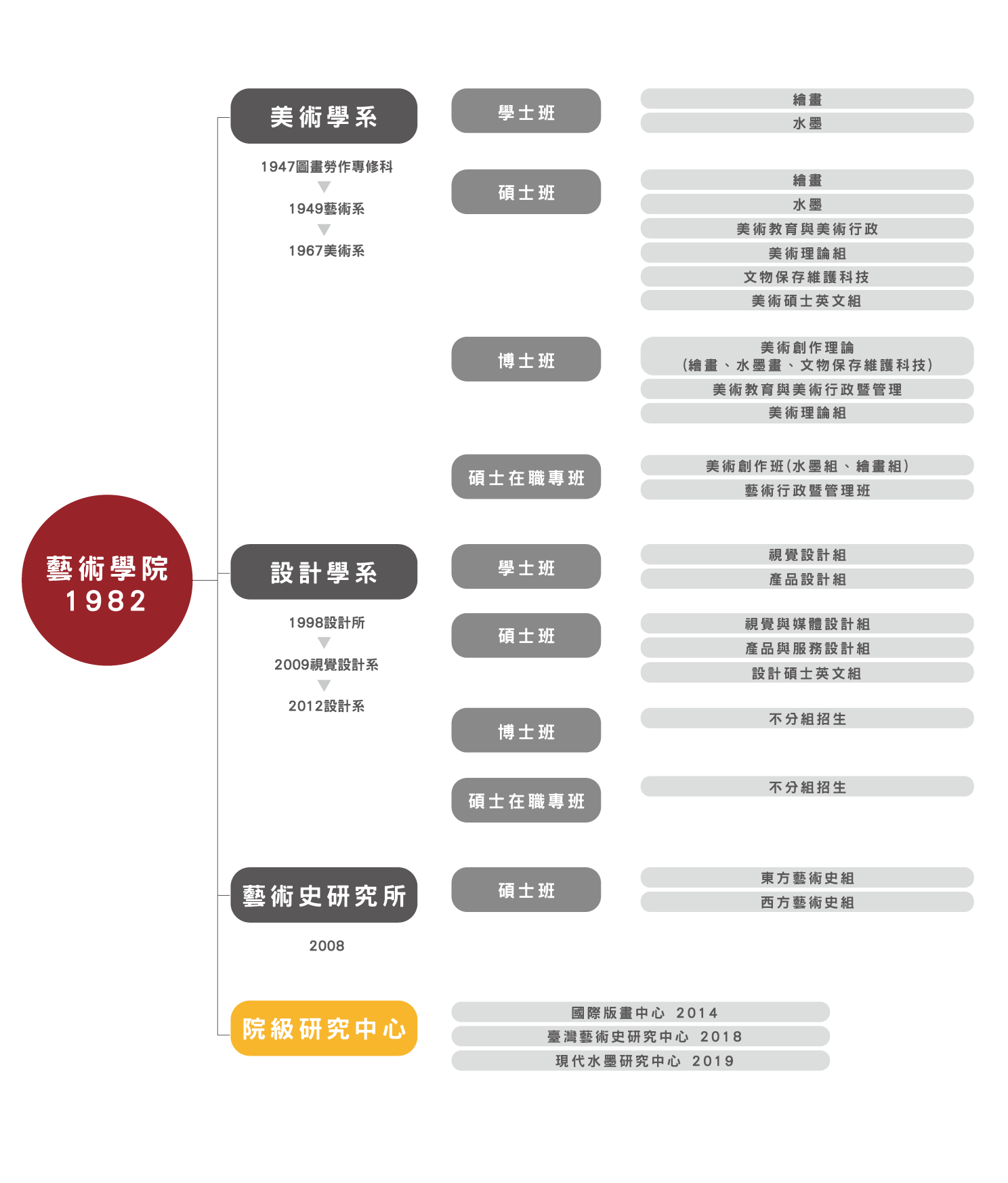 介 紹  為深化臺灣藝術史在研究、出版、教育及推廣等不同層面之學術成果,推動相關前瞻計畫及產學、建教合作方案,並與國家文化建設連結,為國內美術館、文化單位規劃相關人力培訓課程或合作策展規劃,凸顯本校為臺灣藝術史研究重鎮與國際專業交流平臺。